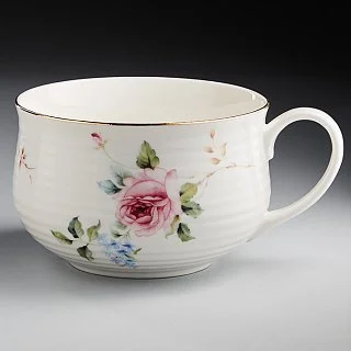 - Бульонница из высококачественного фарфора с декоративным рисунком и золотой обводкой