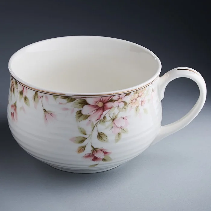 - Бульонница из высококачественного фарфора с рельефным рисунком и золотой обводкой