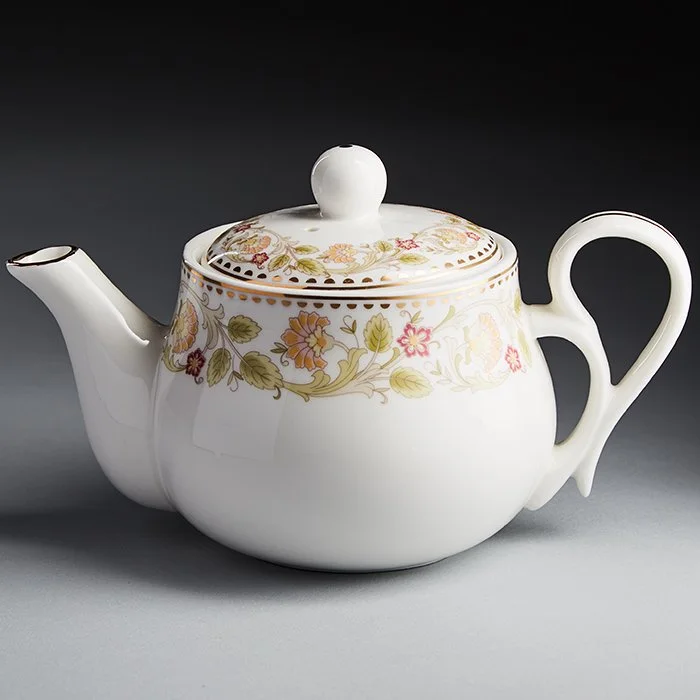 - Чайник заварочный из высококачественного фарфора с декоративным рисунком и золотой обводкой