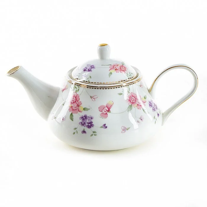 - Чайник заварочный из высококачественного фарфора с декоративным рисунком и золотой обводкой