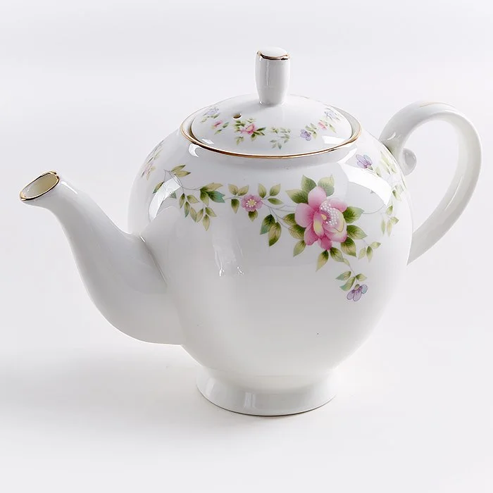 - Чайник заварочный из высококачественного фарфора с декоративным рисунком и золотой обводкой