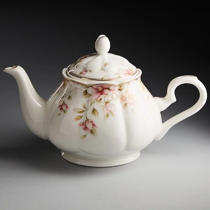 - Чайник заварочный из высококачественного фарфора с декоративным рисунком и золотой обводкой