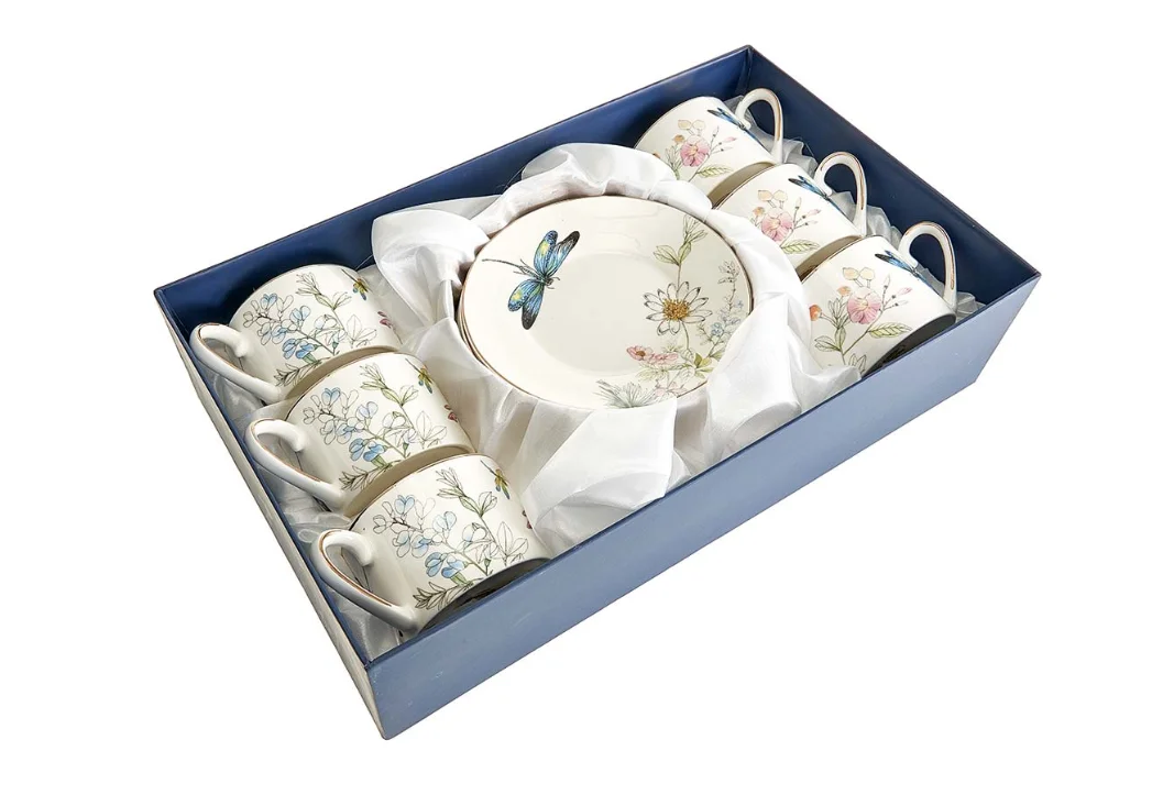 Чайный набор 12 предметов (250 мл) МЛ119P/6 "Стрекоза", белый, в подарочной коробке