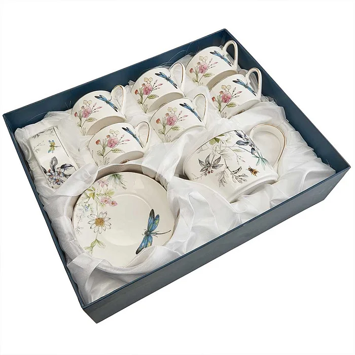 Чайный набор 14 предметов МЛ100P/14 "Стрекоза" в подарочной коробке