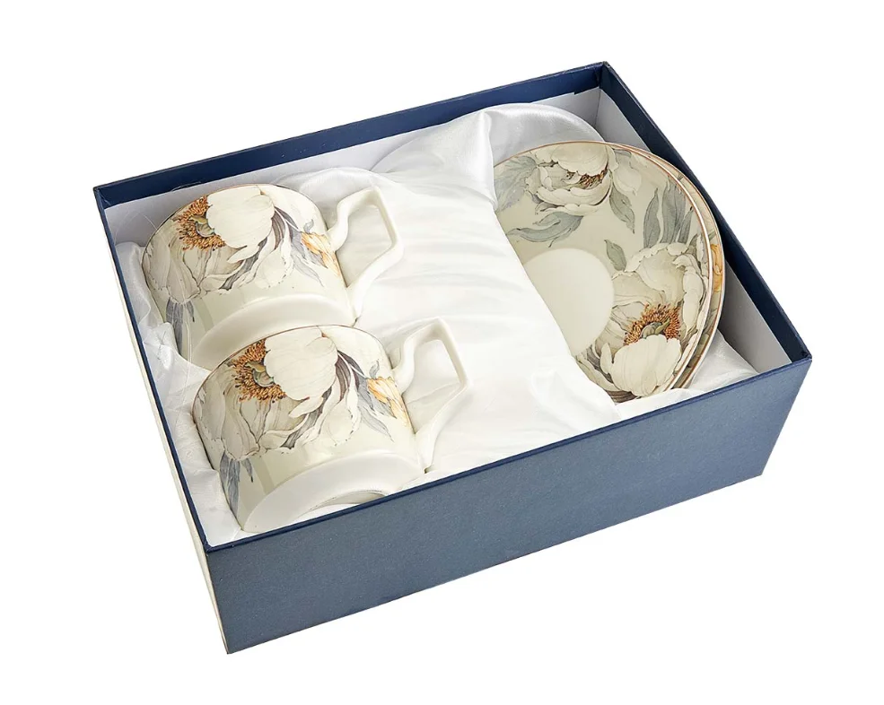 Чайный набор 4 предмета (230 мл) МЛ135P/2 "Серебристый цветок" в подарочной коробке