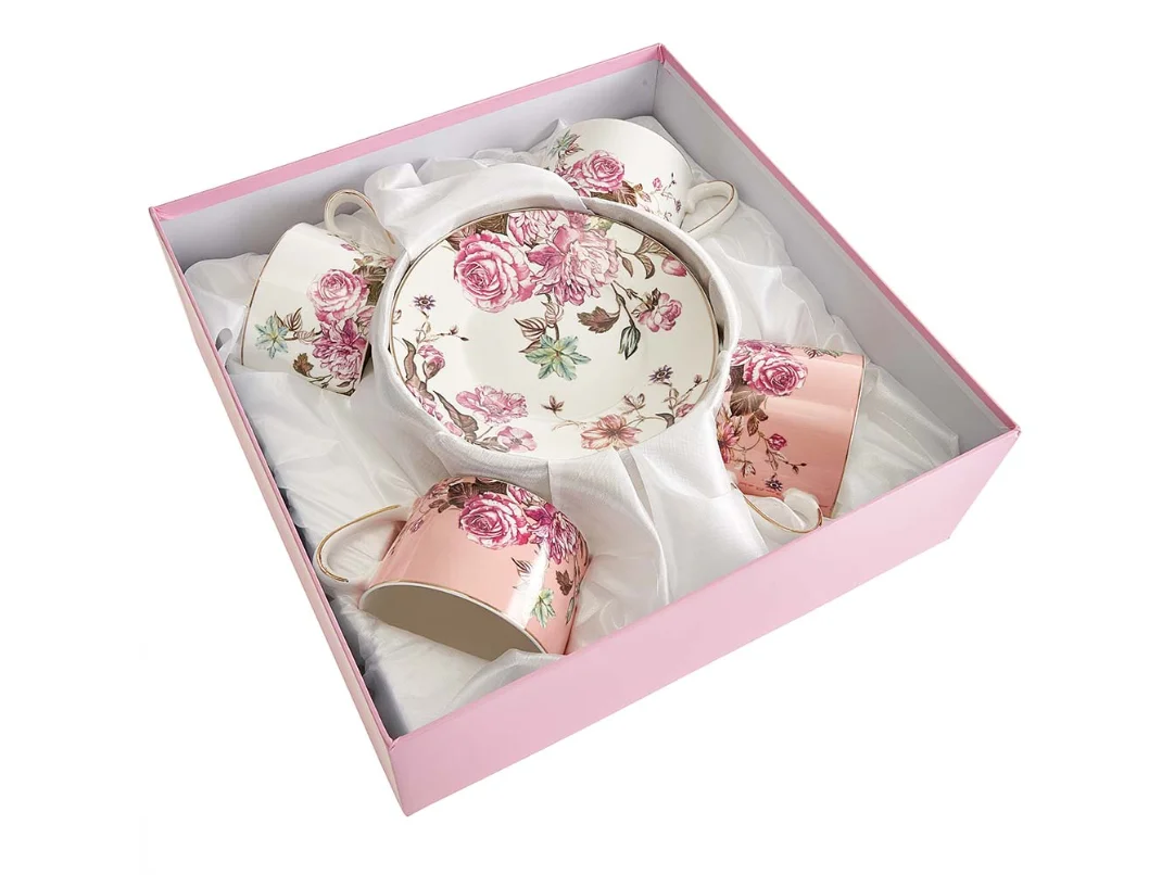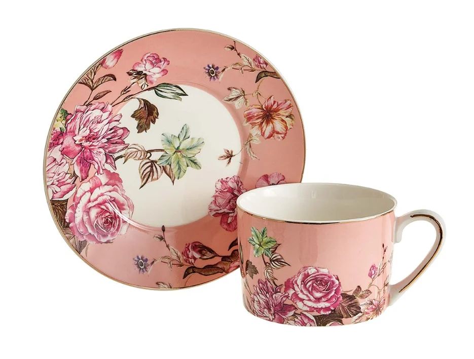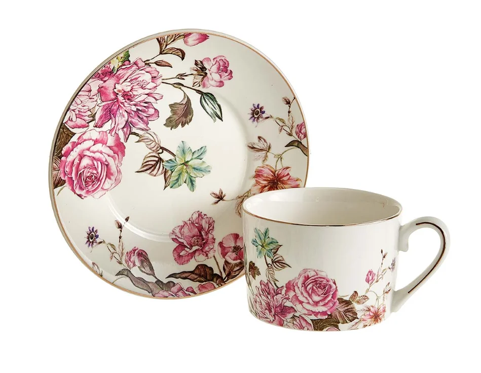 Чайный набор 8 предметов (250 мл) МЛ165P/4 "Английская роза" белый, розовый, в подарочной коробке