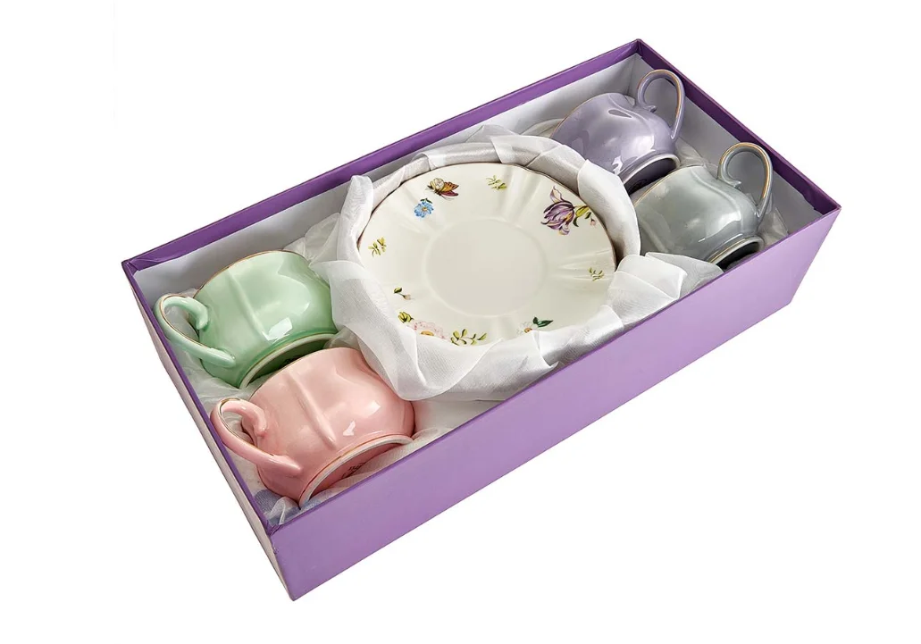 Чайный набор 8 предметов (200 мл) МЛ138P/4 "Симфония", розовый, зеленый, серый, фиолетовый, в подарочной коробке