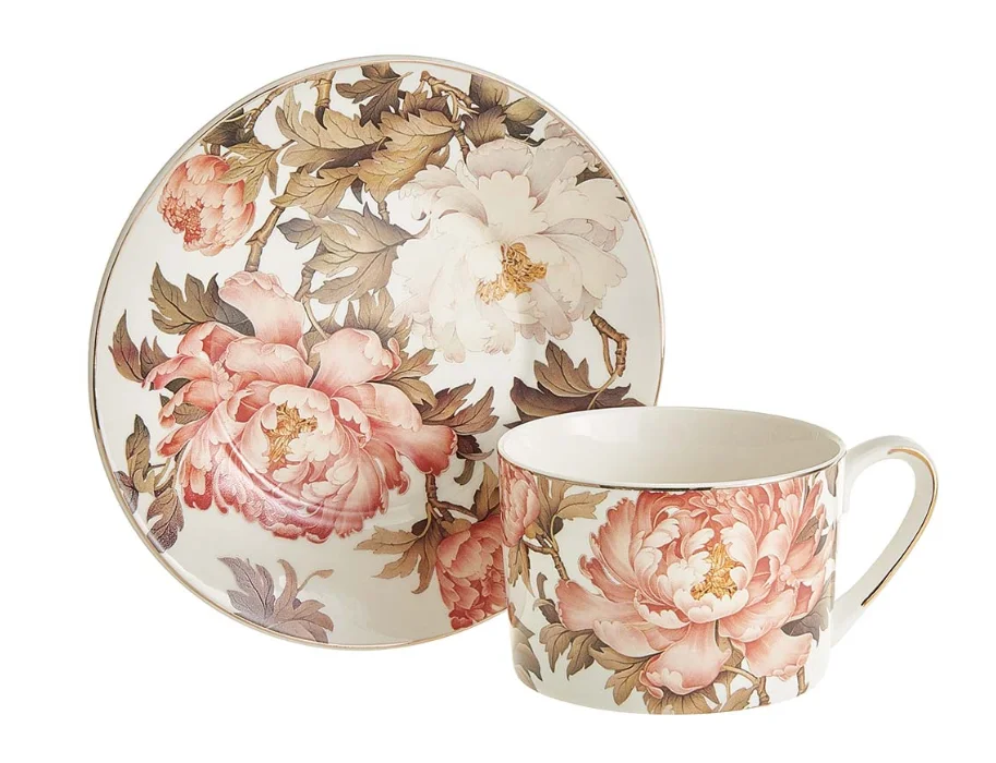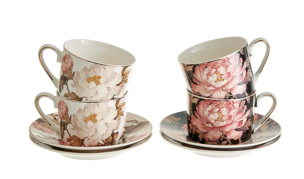 Чайный набор 8 предметов (250 мл) МЛ163P/4 "Японский пион" белый, черный, в подарочной коробке