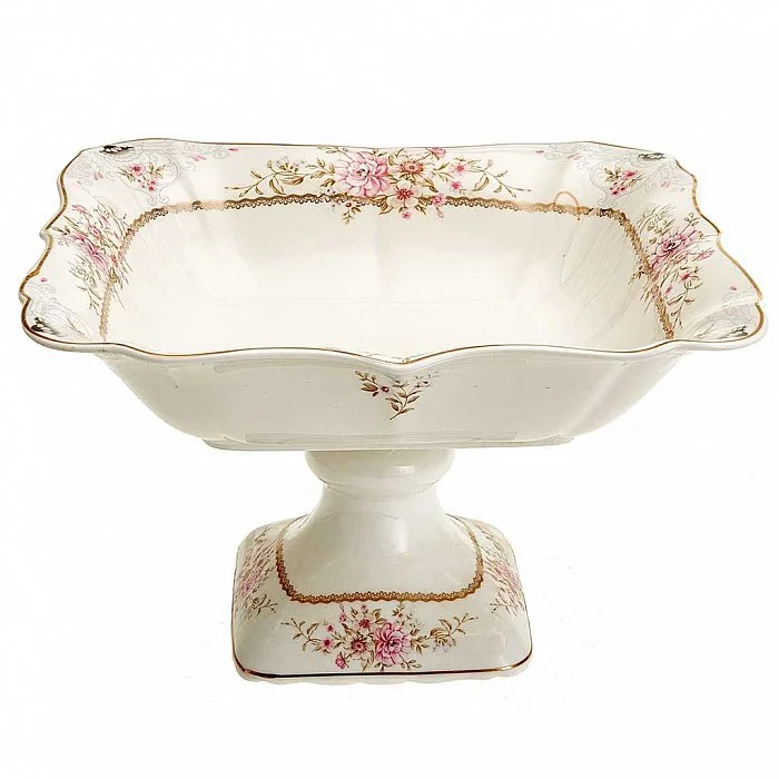 - Фруктовница из высококачественного фарфора с декоративным рисунком и золотой обводкой