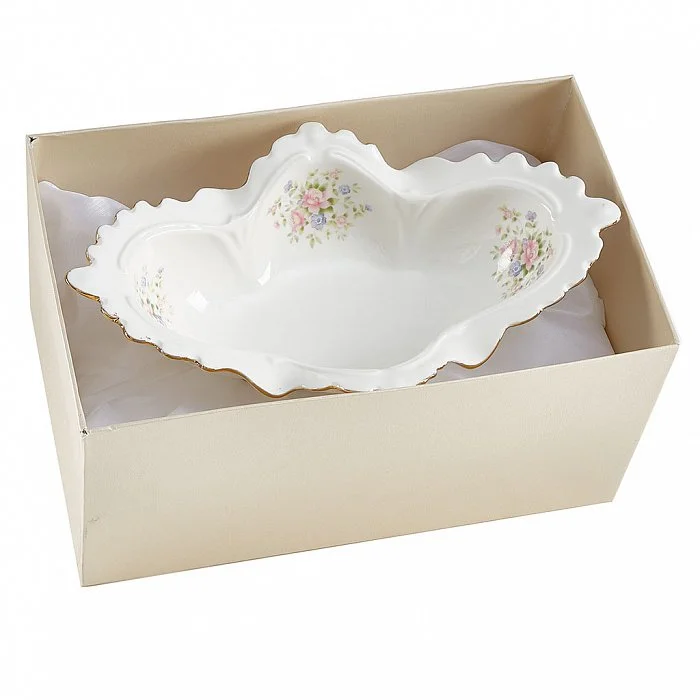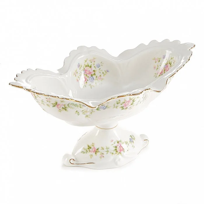 - Конфетница из высококачественного фарфора с декоративным рисунком и золотой обводкой