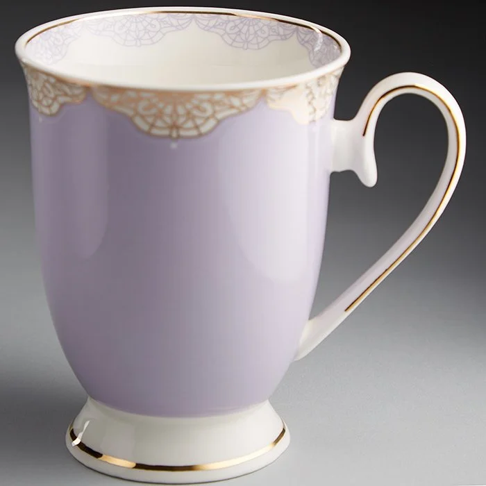 - Кружка из высококачественного фарфора цветная с внутренним декоративным рисунком и золотой обводкой