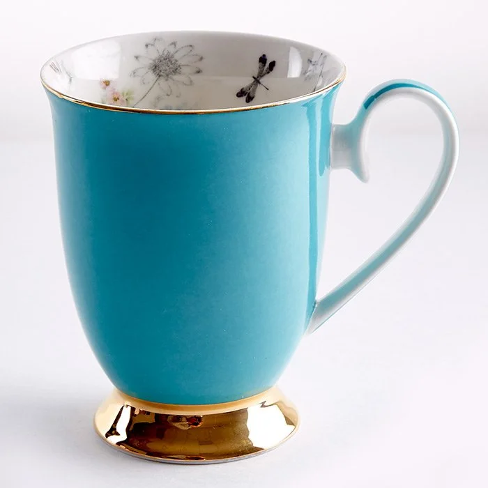 - Кружка из высококачественного фарфора цветная с внутренним декоративным рисунком и золотой обводкой