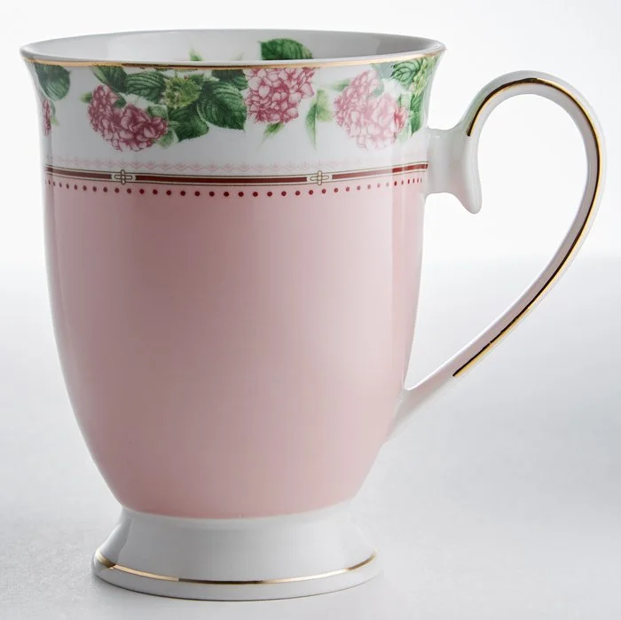- Кружка из высококачественного фарфора цветная с декоративным рисунком и золотой обводкой