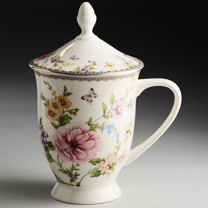 - Кружка заварочная из высококачественного фарфора с декоративным рисунком и золотой обводкой