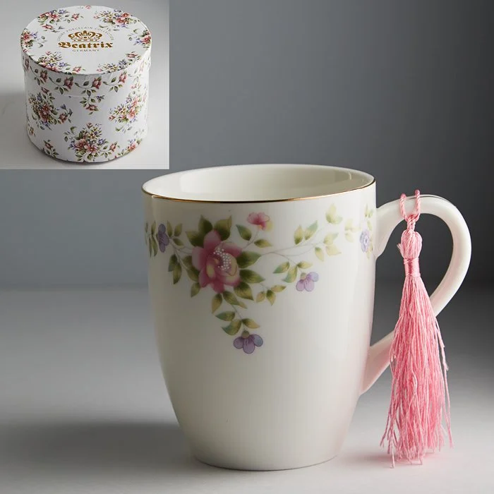 - Кружка из высококачественного фарфора с декоративным рисунком и золотой обводкой