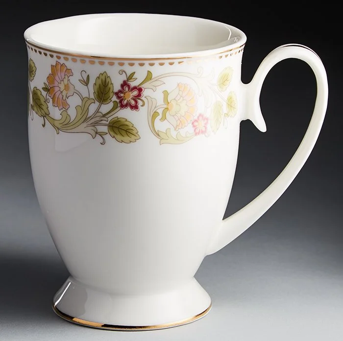 - Кружка из высококачественного фарфора с декоративным рисунком и золотой обводкой