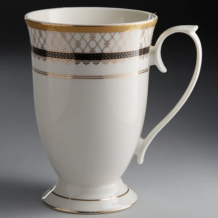 - Кружка из высококачественного фарфора с декоративным рисунком и золотой обводкой