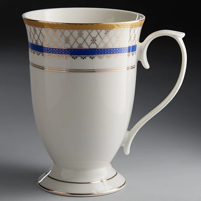 - Кружка из высококачественного фарфора с декоративным рисунком и золотой обводкой