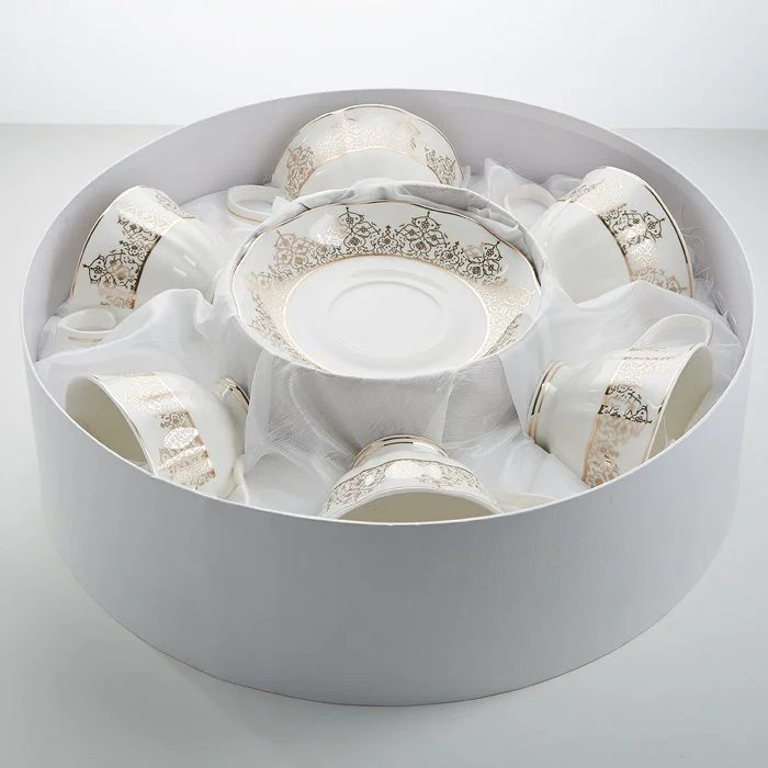 - Набор чайный из высококачественного фарфора с декоративным рисунком и золотой обводкой