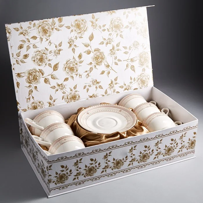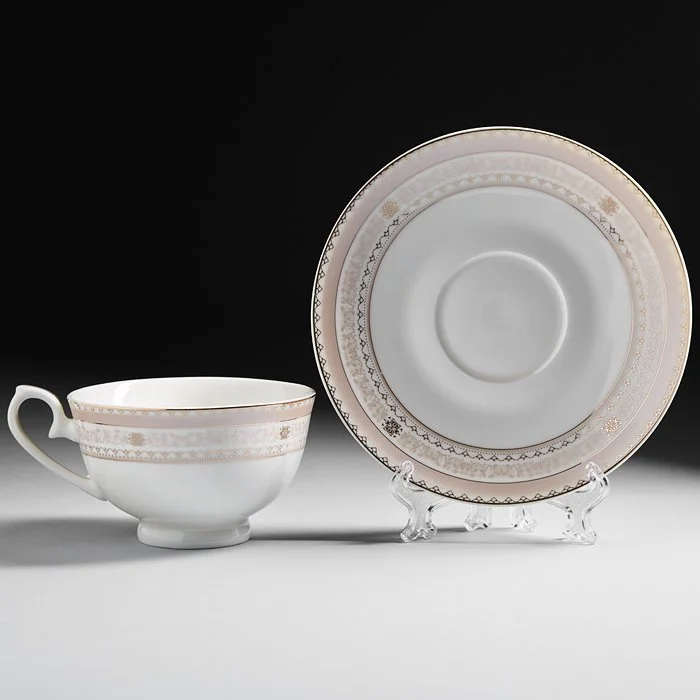 - Набор чайный из высококачественного фарфора с декоративным рисунком и золотой обводкой