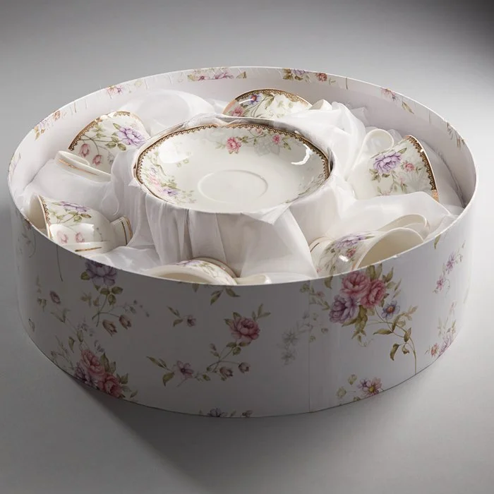 - Набор чайный из высококачественного фарфора с декоративным рисунком и золотой обводкой