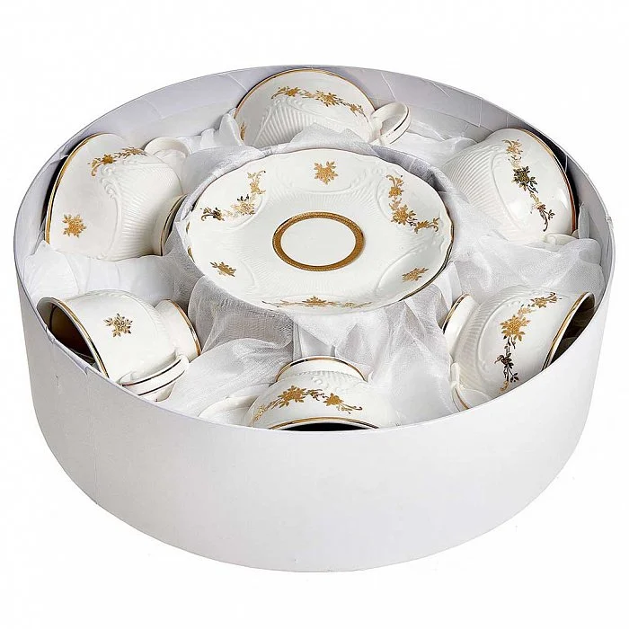 - Набор чайный из высококачественного фарфора с декоративным рисунком и золотой обводкой