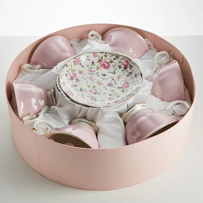 - Набор чайный из высококачественного фарфора с декоративным рисунком и золотой обводкой