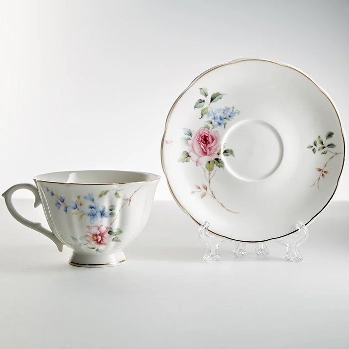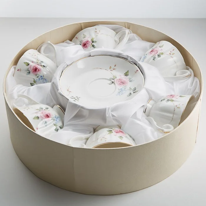 - Набор чайный из высококачественного фарфора с декоративным рисунком и золотой обводкой