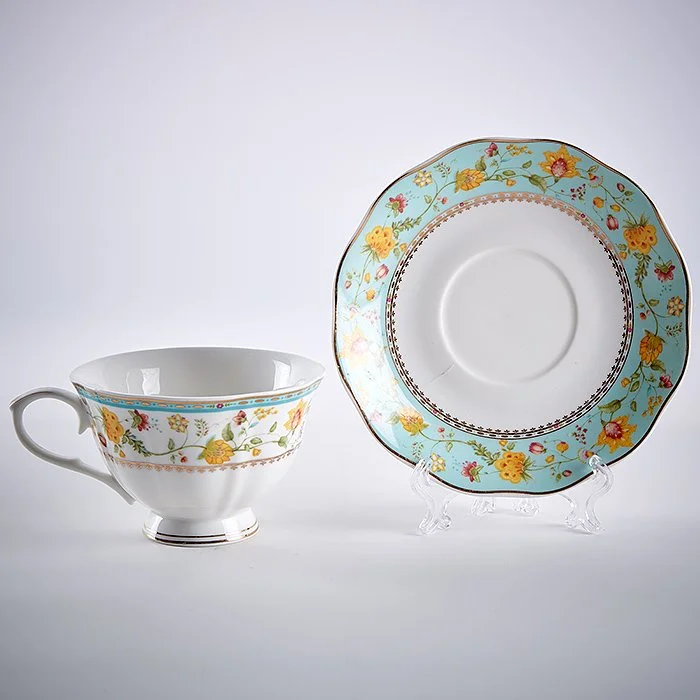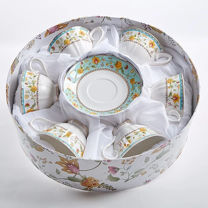 - Набор чайный из высококачественного фарфора с декоративным рисунком и золотой обводкой