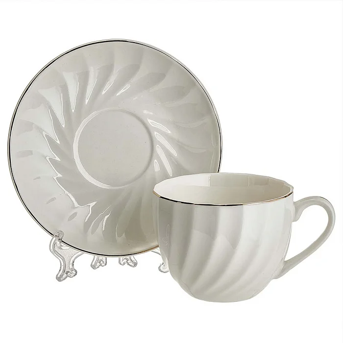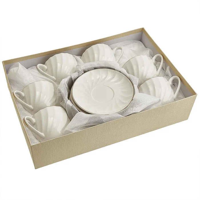 - Набор чайный из высококачественного белого фарфора с рельефным рисунком и золотой обводкой