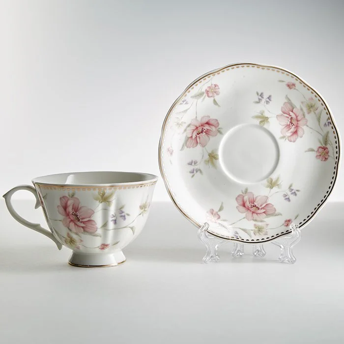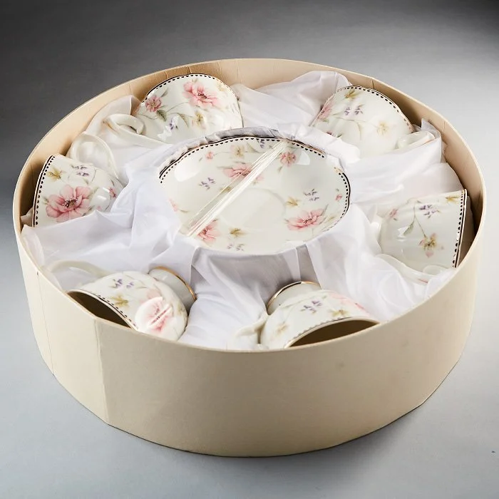 - Набор чайный из высококачественного фарфора с декоративным рисунком и золотой обводкой