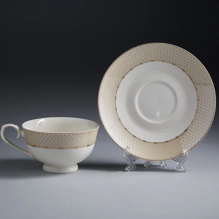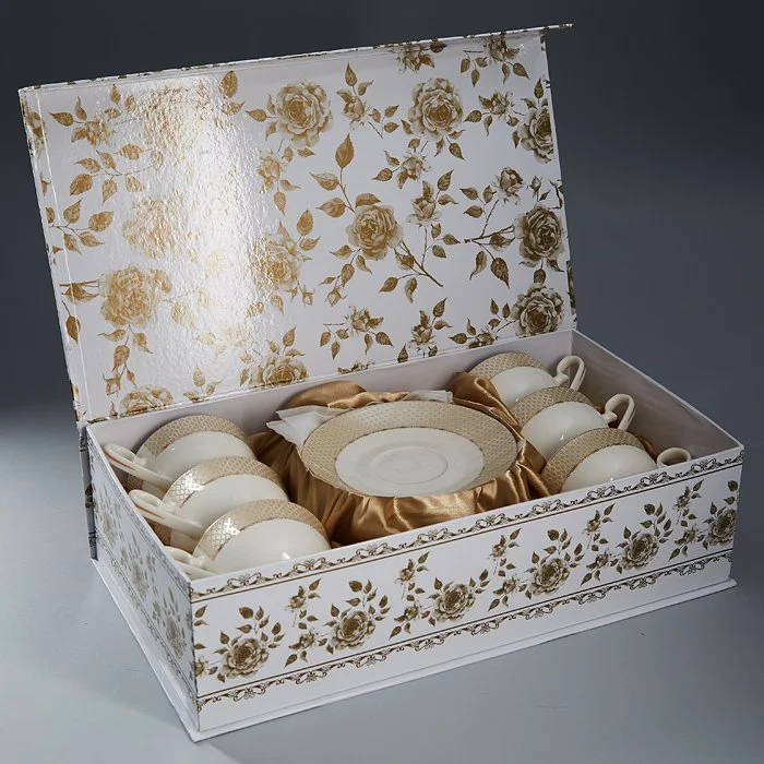 - Набор чайный из высококачественного фарфора с декоративным рисунком и золотой обводкой