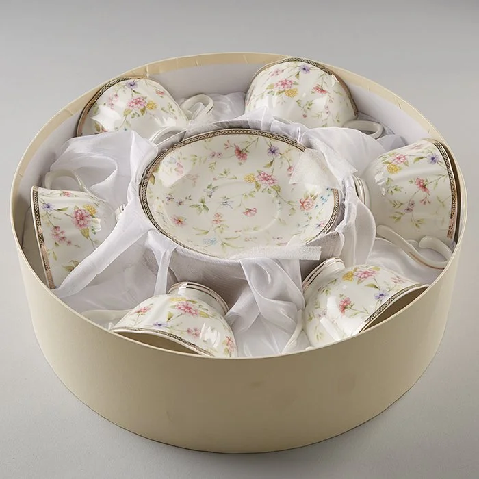 - Набор чайный из высококачественного фарфора с декоративным рисунком и золотой обводкой
