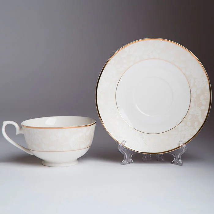 - Набор чайный из высококачественного фарфора с декоративным рисунком и золотой обводкой