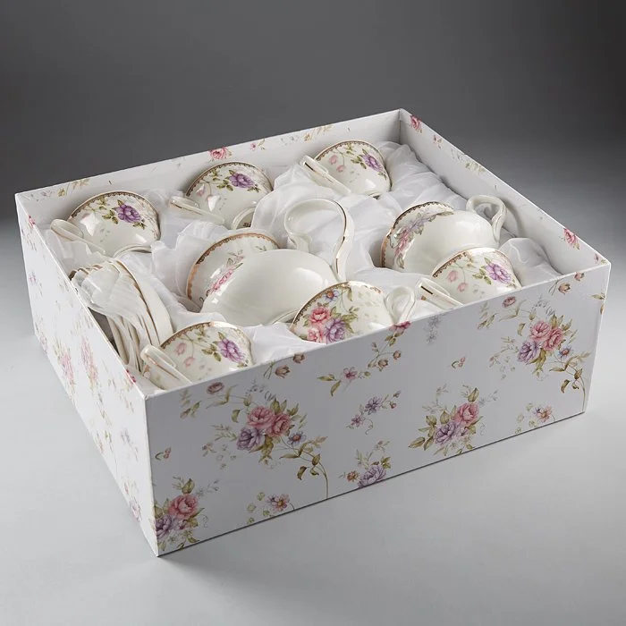 - Набор чайный из высококачественного фарфора с декоративным рисунком и золотой обводкой