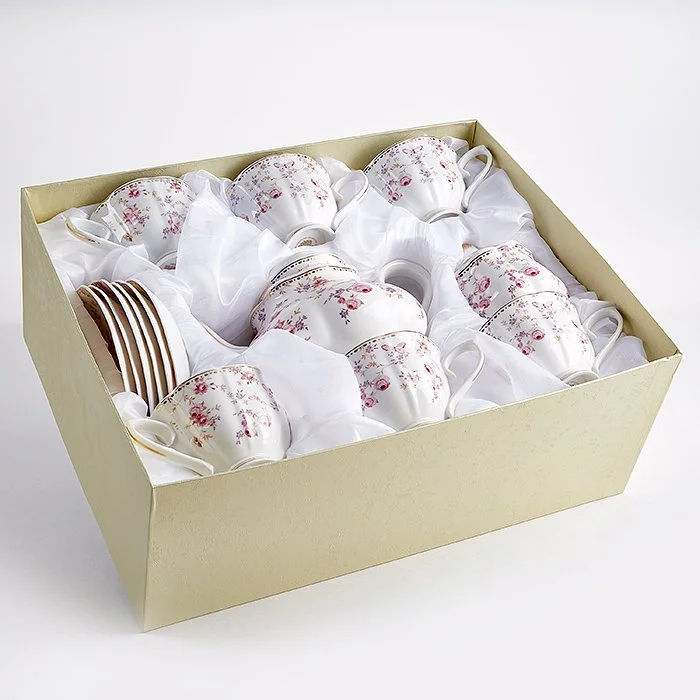- Набор чайный из высококачественного фарфора с декоративным рисунком и золотой обводкой