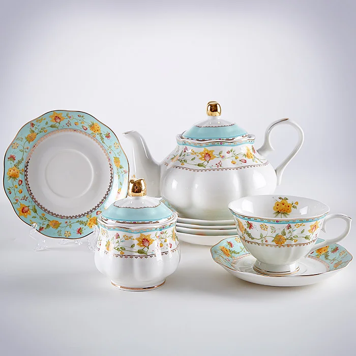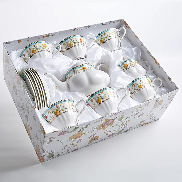 - Набор чайный из высококачественного фарфора с декоративным рисунком и золотой обводкой