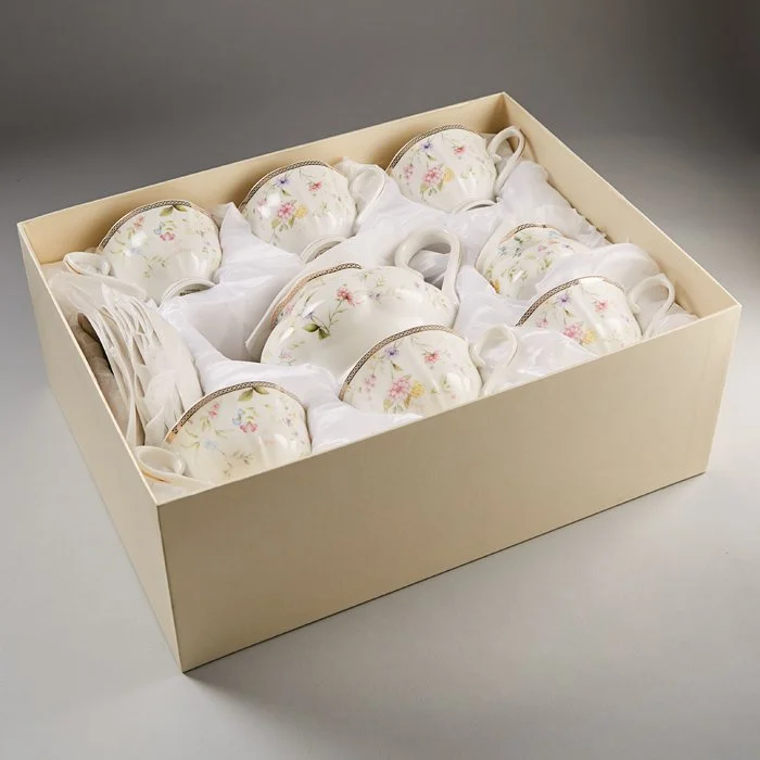 - Набор чайный из высококачественного фарфора с декоративным рисунком и золотой обводкой