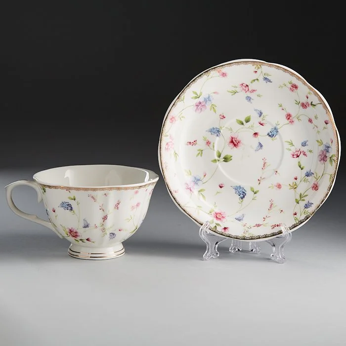 - Набор чайный из высококачественного фарфора с декоративным рисунком и золотой обводкой