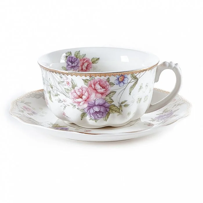 - Набор чайный из высококачественного фарфора с декоративным рисунком и золотой обводкой
