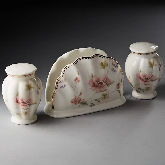 - Набор для сервировки из высококачественного фарфора с декоративным рисунком и золотой обводкой