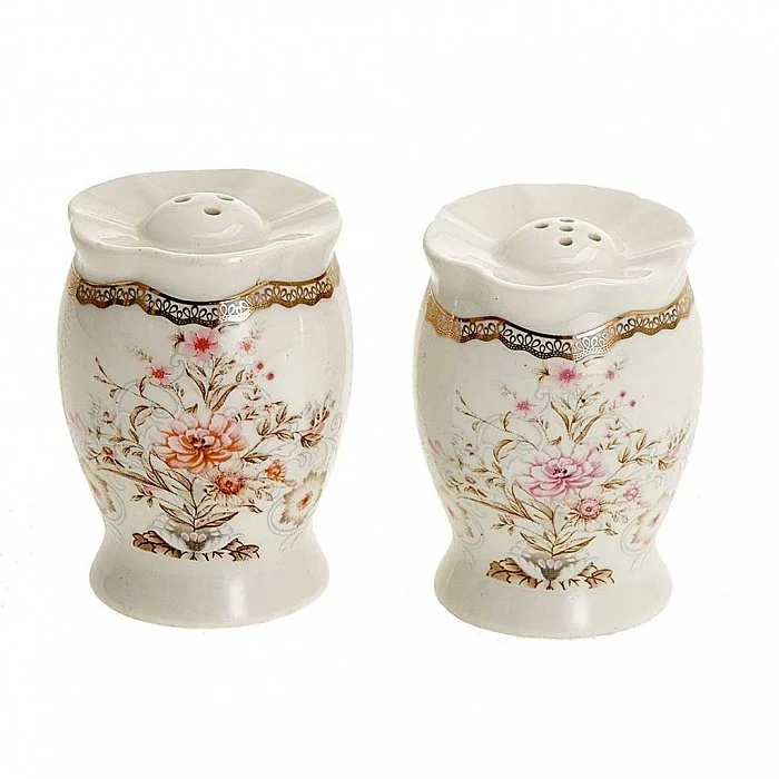 - Набор для специй из высококачественного фарфора с декоративным рисунком и золотой обводкой