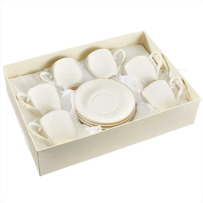 Сервизы чайные, кофейные » BEATRIX Набор кофейный Ф5-033В/6 Набор кофейный 12 предметов: 6 чашек (90 мл) + 6 блюдец Ф5-033В/6 в подарочной коробке Производитель: BEATRIXКоличество предметов: 12 прМатериал: фарфорОбъем: 0-99 млТип сервиза: кофейныйНаличие: Нет в наличииБонусы: 26 ₽ Код товара: 81381 нет в наличии Описание Параметры В наборе 12 предметов: чашка 90 мл кофейная 6 штук блюдце 6 штук Описание Набор кофейный из высококачественного белого фарфора с рельефным рисунком и золотой обводкой Упаковка: подарочная коробка Поделитесь ссылкой: