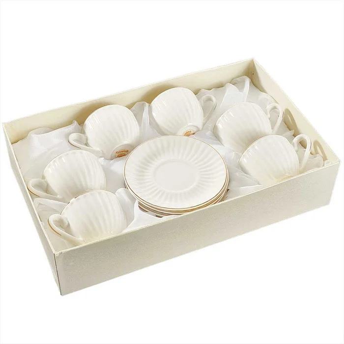 Сервизы чайные, кофейные » BEATRIX Набор кофейный Ф5-035В/6 Набор кофейный 12 предметов: 6 чашек (90 мл) + 6 блюдец Ф5-035В/6 "Суфле" в подарочной коробке Производитель: BEATRIXКоличество предметов: 12 прМатериал: фарфорОбъем: 0-99 млТип сервиза: кофейныйНаличие: Нет в наличииБонусы: 27 ₽ Код товара: 81383 нет в наличии Описание Параметры В наборе 12 предметов: чашка 90 мл кофейная 6 штук блюдце 6 штук Описание Набор кофейный из высококачественного белого фарфора с рельефным рисунком и золотой обводкой Серия: Суфле Упаковка: подарочная коробка Поделитесь ссылкой: