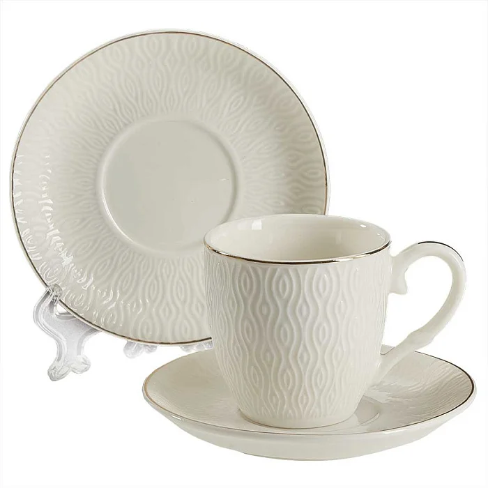 Сервизы чайные, кофейные » BEATRIX Набор кофейный Ф5-036В/2 Набор кофейный 4 предмета: 2 чашки (90 мл) + 2 блюдца Ф5-036В/2 в подарочной коробке Производитель: BEATRIXКоличество предметов: 4 прМатериал: фарфорОбъем: 0-99 млТип сервиза: кофейныйНаличие: Нет в наличииБонусы: 12 ₽ Код товара: 81378 нет в наличии Описание Параметры В наборе 4 предмета: чашка 90 мл кофейная 2 штуки блюдце 2 штуки Описание Набор кофейный из высококачественного белого фарфора с рельефным рисунком и золотой обводкой Упаковка: подарочная коробка Поделитесь ссылкой: