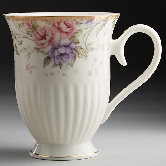 - Кружки из высококачественного фарфора с декоративным рисунком и золотой обводкой
