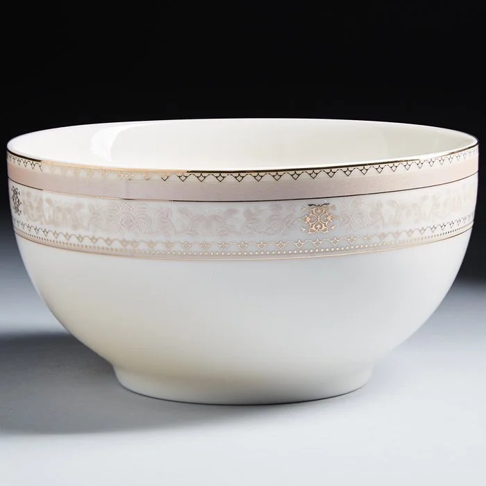 - Набор салатников из высококачественного фарфора с декоративным рисунком и золотой обводкой