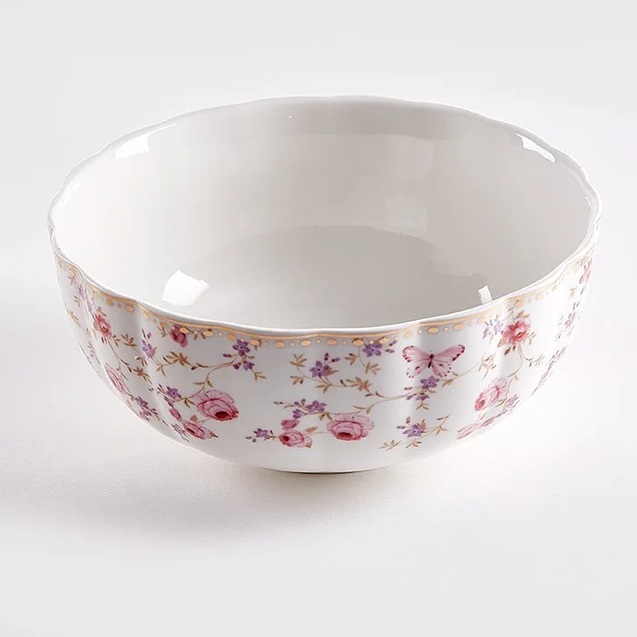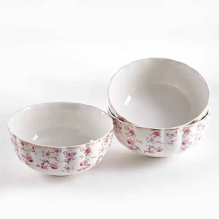 - Набор салатников из высококачественного фарфора с декоративным рисунком и золотой обводкой