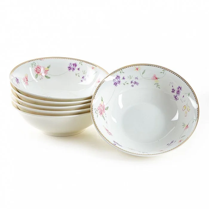 - Набор салатников из высококачественного фарфора с декоративным рисунком и золотой обводкой
