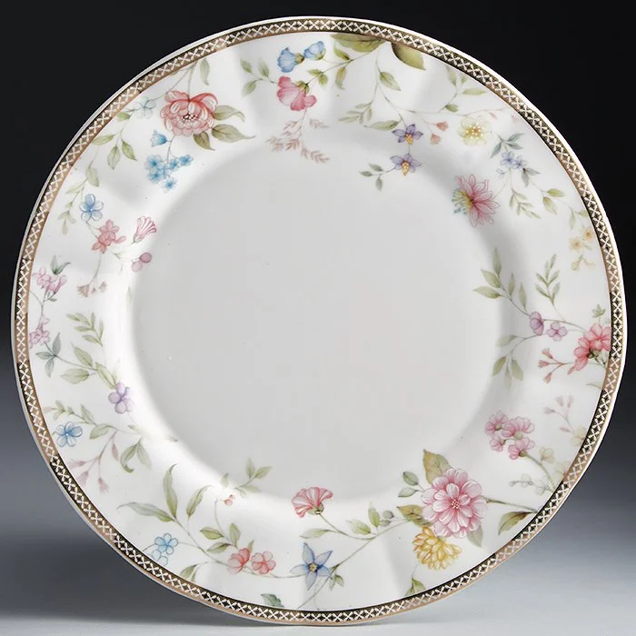 - Тарелки десертные из высококачественного фарфора с декоративным рисунком и золотой обводкой